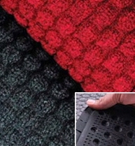 Tapete AQUA-TRAP, recomendado para zonas de intenso tráfego, para colocação nos interiores, nas entradas de escolas, edifícios públicos, lojas etc. Características: Tratamento anti-bacteriano, retardador de fogo, retém até 6lts de água por m2. Fibras de 100% Decalon® 800 grs. por m2. Base em borracha SBR de 13mm. Pesa 5,2 kg por m2. Limpar por aspiração ou lavar com mangueira e pendurar para secar. Medidas:60cm x 90cm; 90cm x 150cm; 120cm x 180cm e 120cm x 300cm. Cores: cinza, castanho, charcoal, azul, verde, encarnado e bordeux.