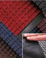 Tapete WAYFARER 14mm SEM BASE. Recomendado para zonas de médio a grande tráfego, para colocação no interior ou exterior. Características: Fios de 1mm diâmetro, 100 % PVC, pesa 4,8kgs. por m2. É anti-derrapante. Cores: cinza escuro,azul-escuro e encarnado. Medidas: 90 cm x 150 cm e 120 cm x 180 cm.