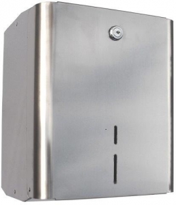 Dispensador de papel de toalha em rolo tipo mecha satinado. Medidas: 280 x 220 x 220 mm.Rolo máximo 200 mm, diâmetro 200 mm.