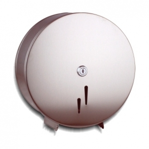 Porta rolos jumbo inox satinado, fabricado com material de alta qualidade e grande resistência, com abertura frontal basculante, para maior comodidade, anti-vandálico, visor de nível e fecho com chave. Capacidade: 250 mts.
