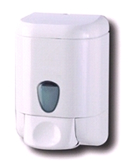 Dispensador de sabão em ABS branco,com visor de nível e chave. Capacidade: 1 lt. Medidas:201 x 112 x 128 mm.